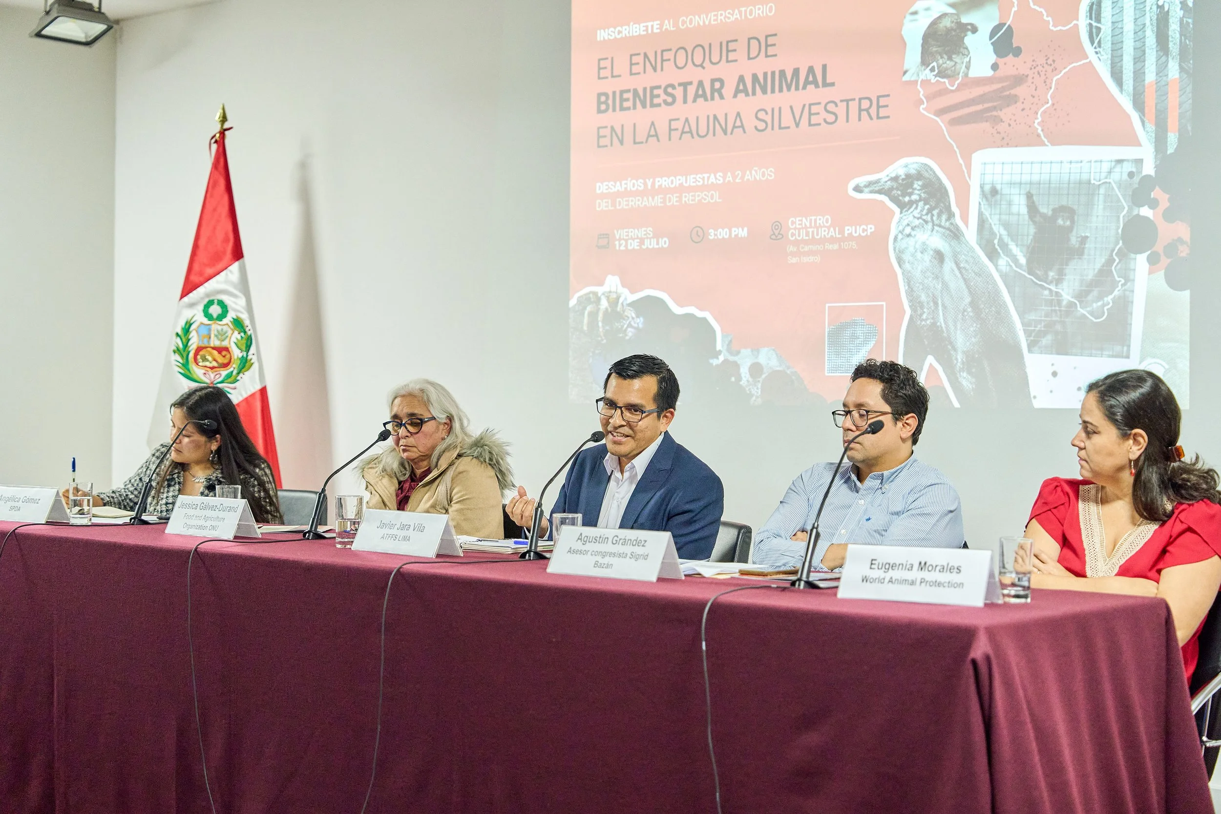The attendees participated in a discussion space with specialists and experts in wildlife to analyze and discuss the best strategies to ensure the well-being of animals in their natural habitats, especially following the devastating effects of the oil spill in the Ventanilla sea.